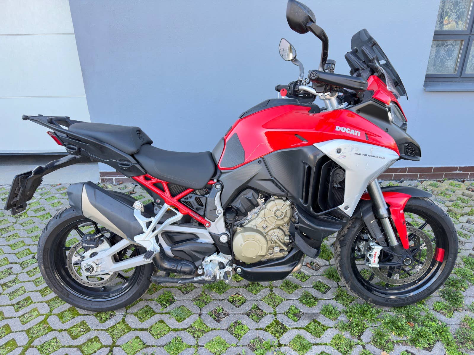 Ducati multistrada V4s, 2021, najeto 22 tis km, serviska, pravidelný servis, lehce položená - lehké poškození plastů, blatník a chladiče, cz TP, 2x klíč, možnost úvěru od Essoxu nebo Cofidis