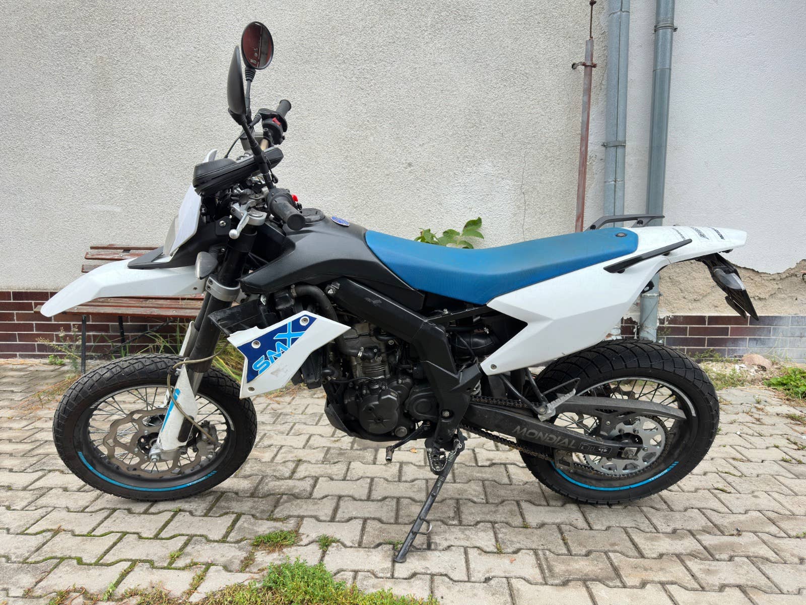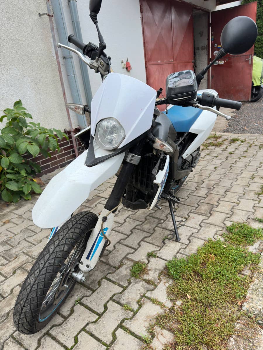 F. b. mondial 125 smx, 2017, najeto cca 40 tis km, poškození viz foto- boční plast, promáčkly chladič na opravu, jinak kosmetz, možnost úvěru od Essoxu nebo Cofidis, cz TP, nové pneumatiky