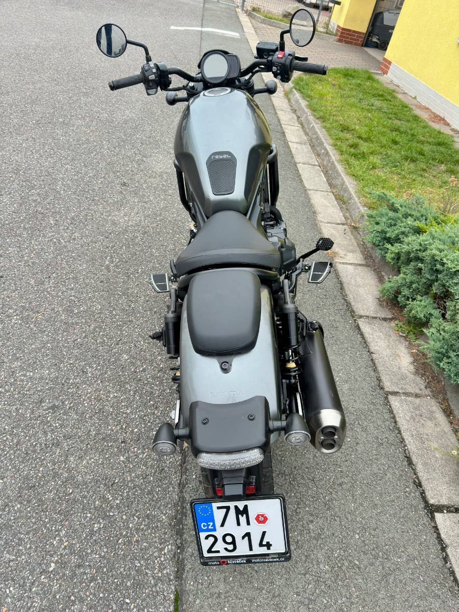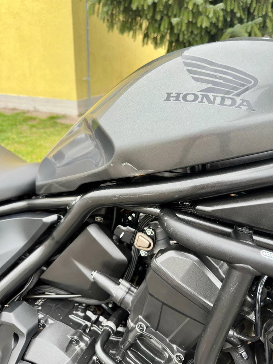 Honda cmx 1100 rebel dct, 2024, najeto 11 tis km, po 1. Majitelce, koupená nová v Cz, havarované viz foto - světlo, nádrž, držák stupačky, řidítka, páčky atd, možnost úvěru od Essoxu nebo Cofidis