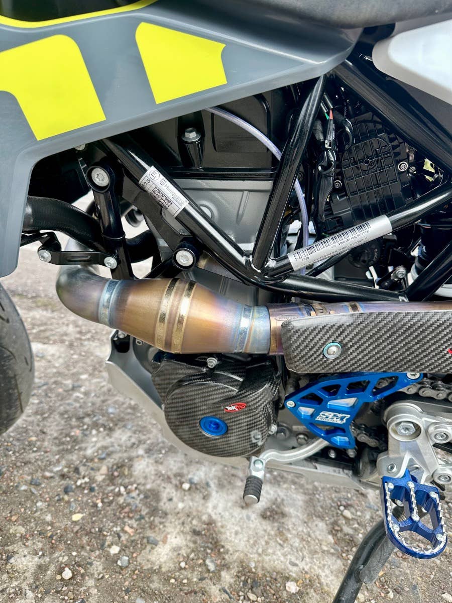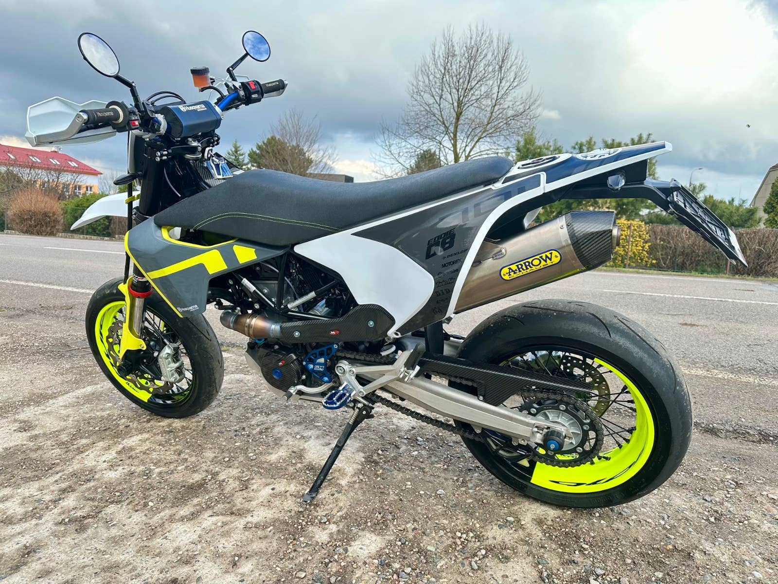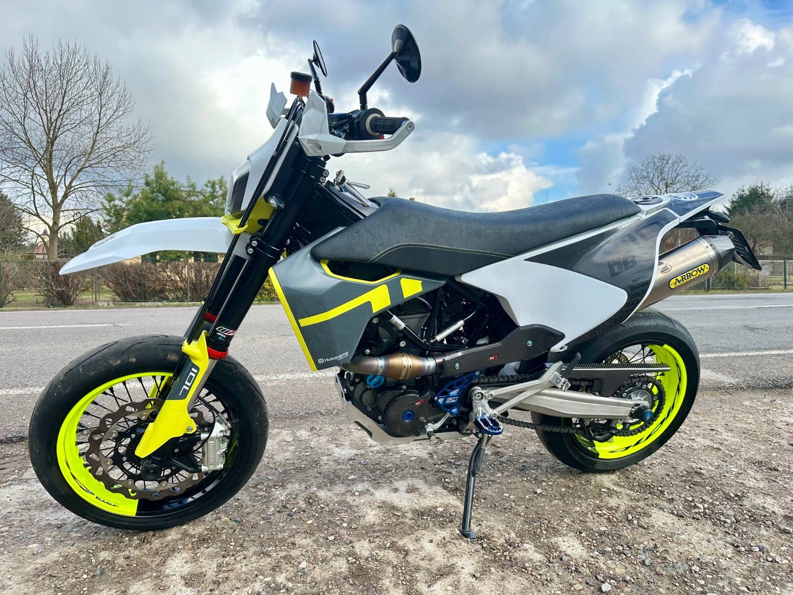 usqvarna 701 supermoto, 2020, najeto pouze 1200 km - stav nového motocyklu, 1. majitel, bez vad, majitel pořídil mnoho doplňků na motocykl- doplňkové led světlo, laděný výfuk Arrow včetně kompletního svodu a vložky, kryty rukojetí, zrcátka, sedadlo, karbonové kryty motoru, stupačky, kryt malého kolečka a karbon kryt řetězovky, doplňkový držák SPZ, víčko nádrže, ochranné polepy, protektory na osy kol, dvoubarevný drátěné kovaná kola Aplina bcolor za cca 50 tis Kč, víčko olej filtru, hliníkový kryt motoru, brzdový třmen a racing kotouč, radiální Pumpa brembo, řidítka, ochrana klemů, karbonový kryt rámu, atd ve výbavě přes 100 tis Kč+, možnost úvěru od Essoxu nebo Cofidis, stav zánovní motorky s úžasnými doplňky