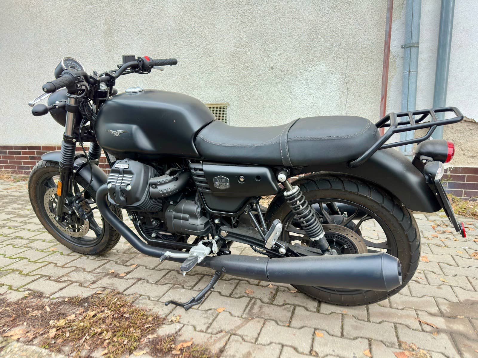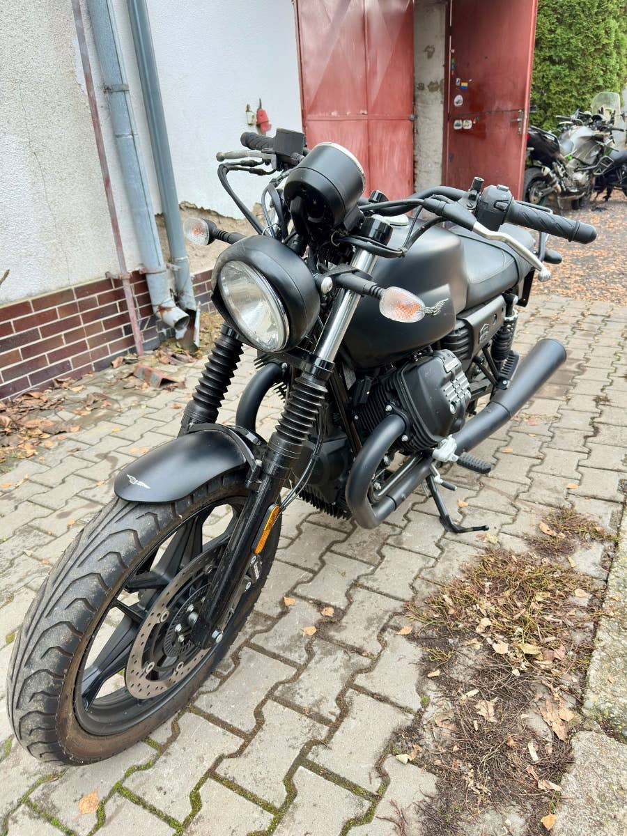 Moto Guzzi v7III, 2020, najeto 8 tis km, lehce položená - víko motoru, světlo - parabola je ok, odřený Výfuk, řidítka, dolík v nádrži, Dovoz Itálie, možnost úvěru od Essoxu nebo Cofidis