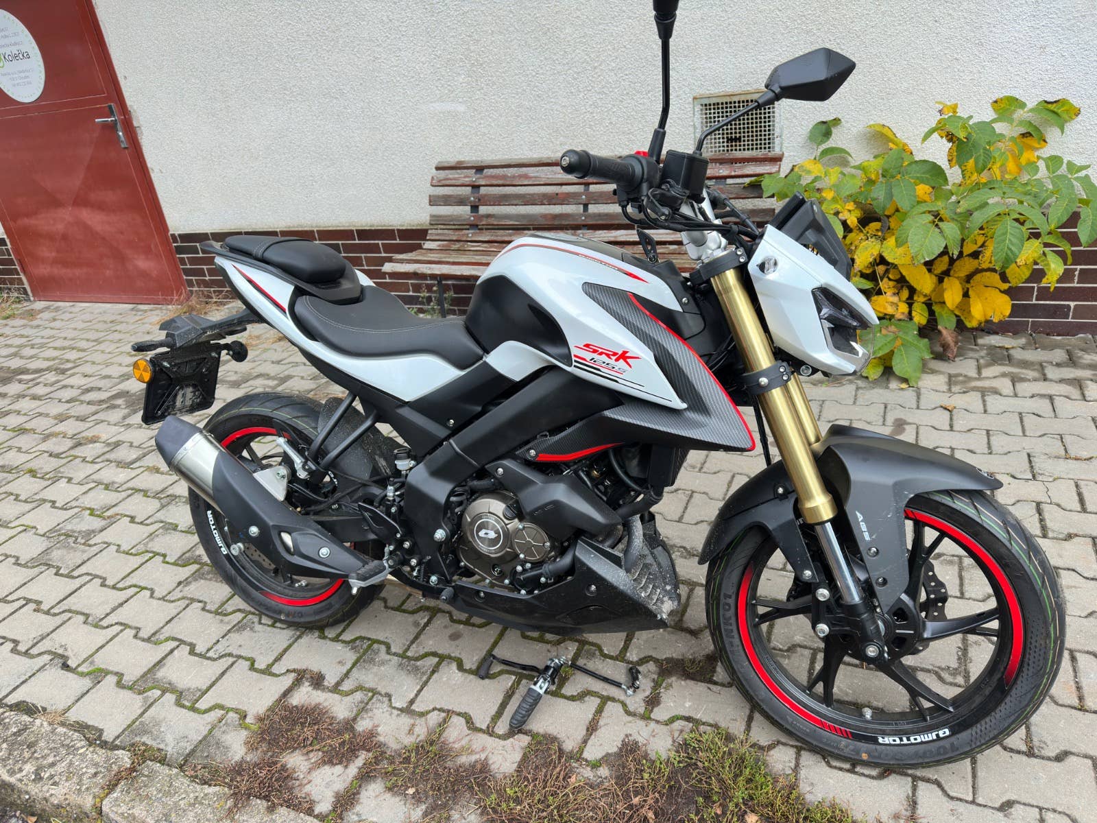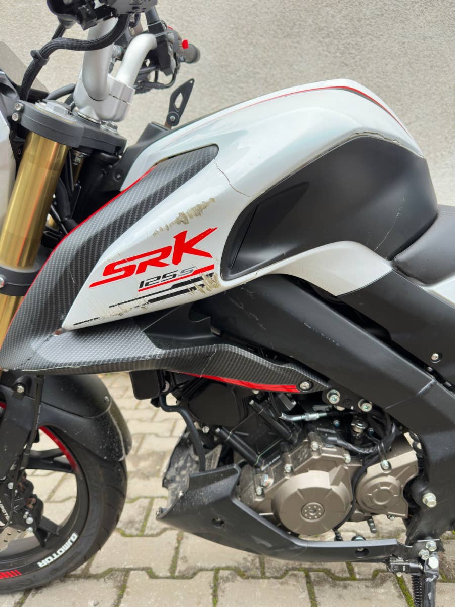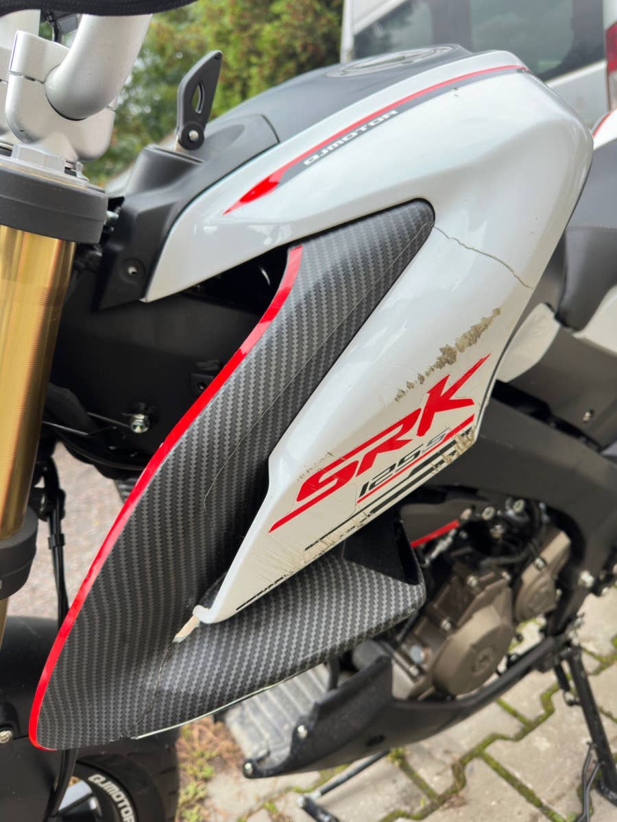 Qj motor 125 s, 2025, najeto cca 700 km, havarované viz foto - pravý bok - plasty jsou lehce opravené, držák stupačky, a drobnosti, moto koupené nové v ČR, 1. Majitel, možnost úvěru od Essoxu nebo Cofidis