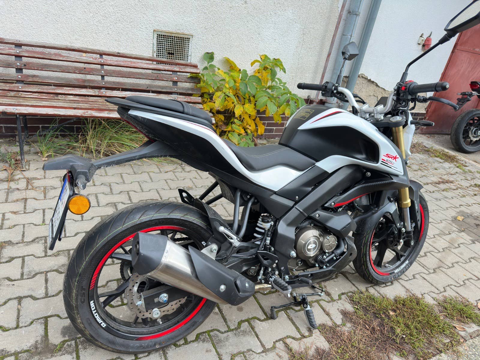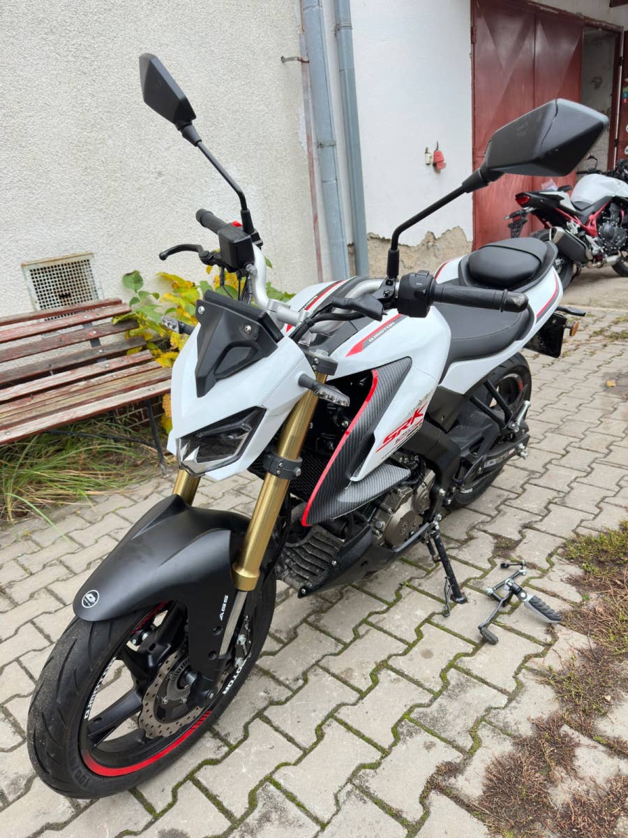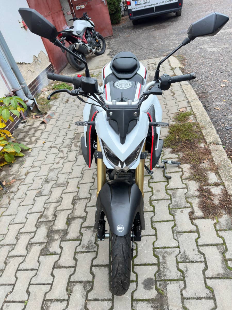 Qj motor 125 s, 2025, najeto cca 700 km, havarované viz foto - pravý bok - plasty jsou lehce opravené, držák stupačky, a drobnosti, moto koupené nové v ČR, 1. Majitel, možnost úvěru od Essoxu nebo Cofidis