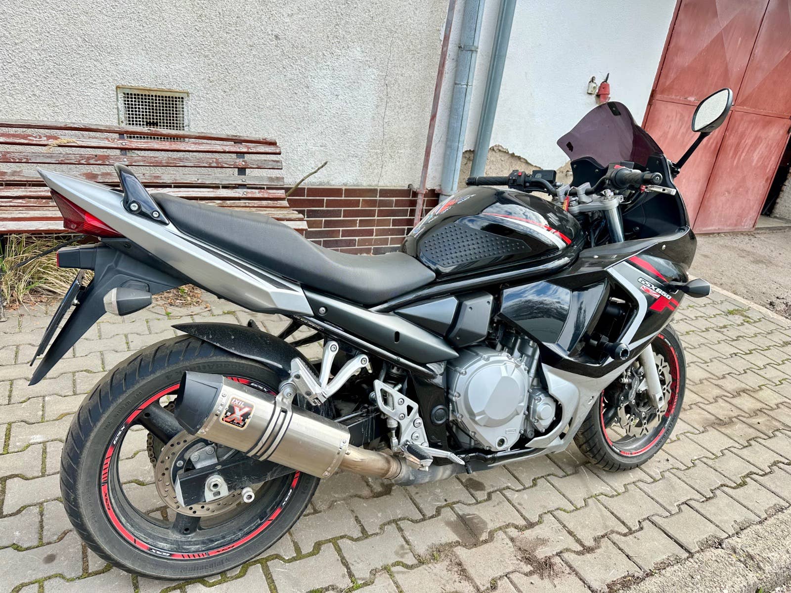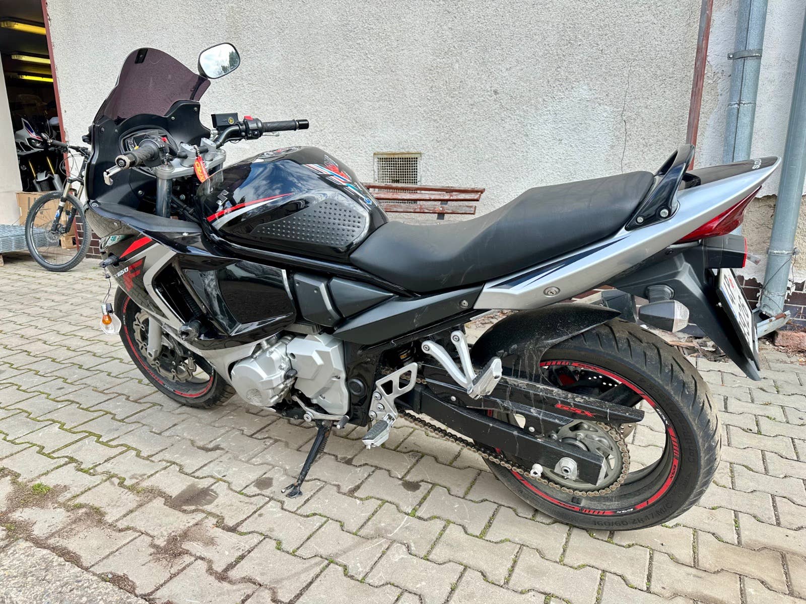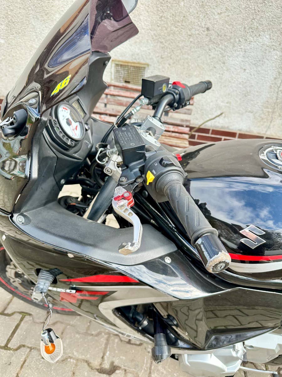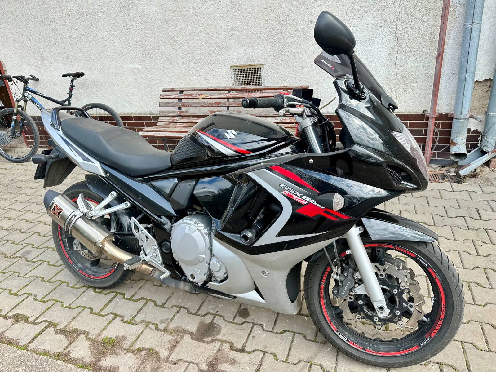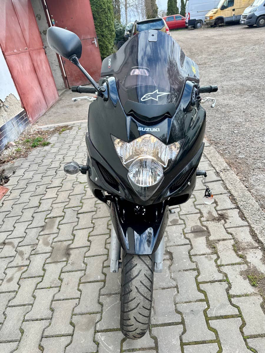 Suzuki gsx 650 f, 2008, najeto 46 tis km, v TP 35 kW lze řídit od 18-ti let, lehce položená na levou stranu, blinkr, řidítko, zrcátko, kapota odřená, prakticky pojízdný motocykl, možnost úvěru od Essoxu nebo Cofidis