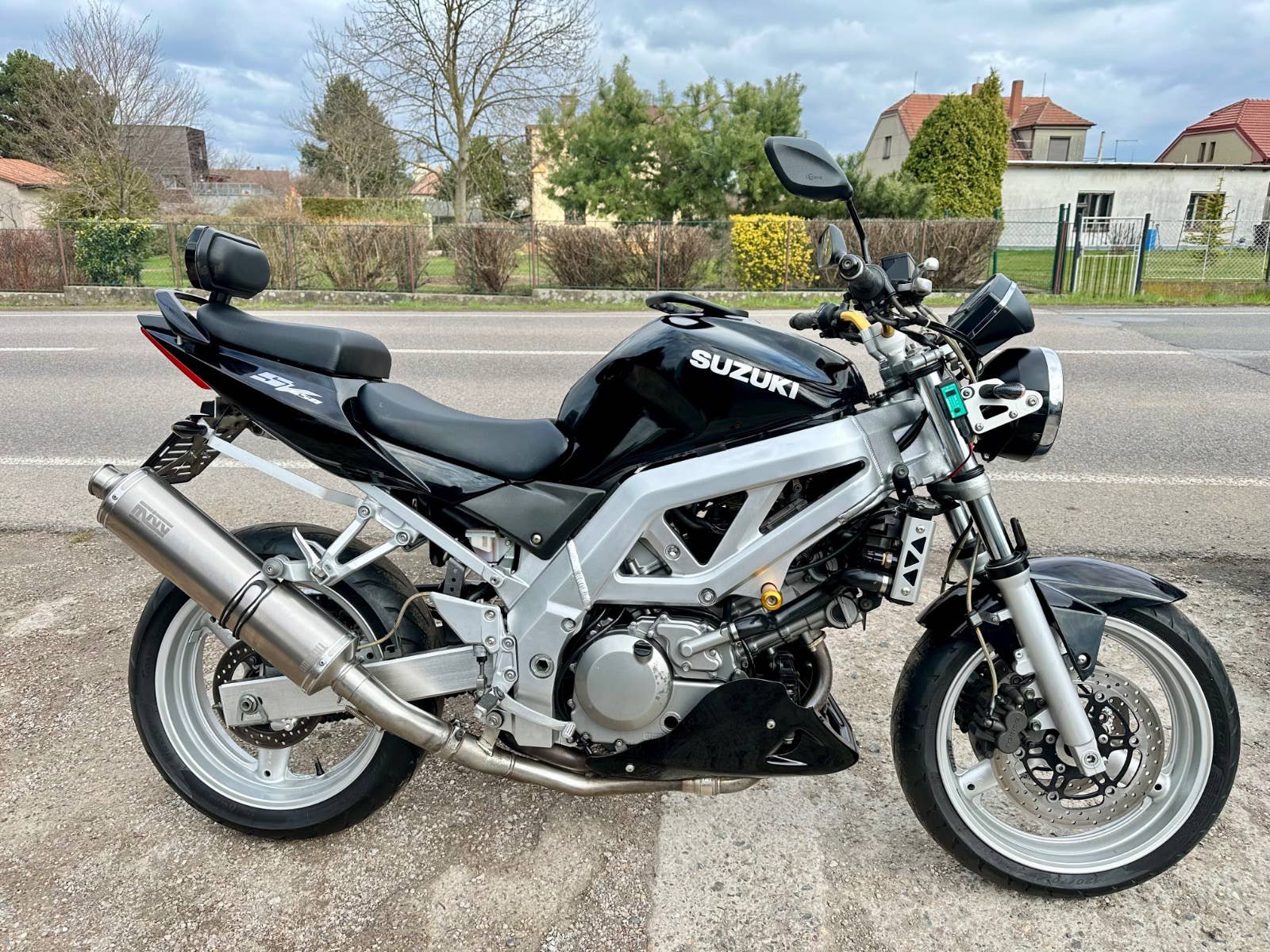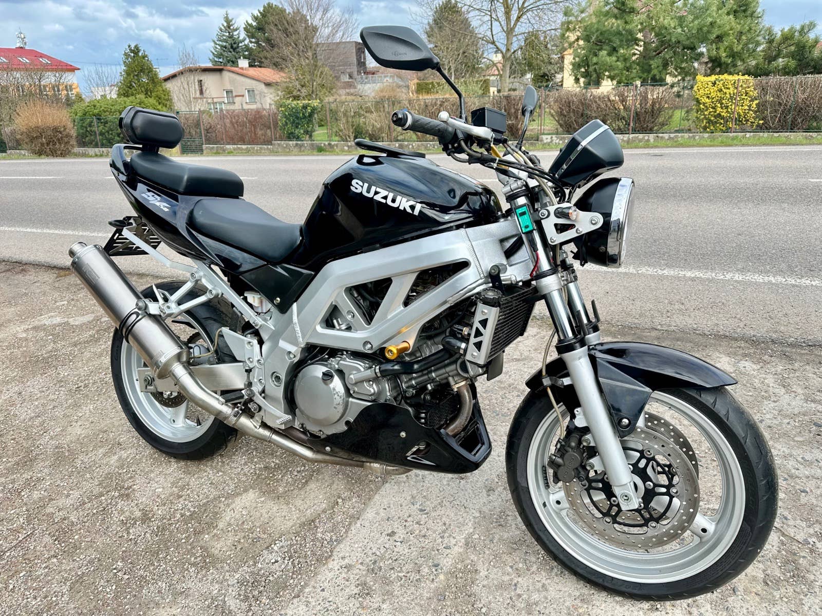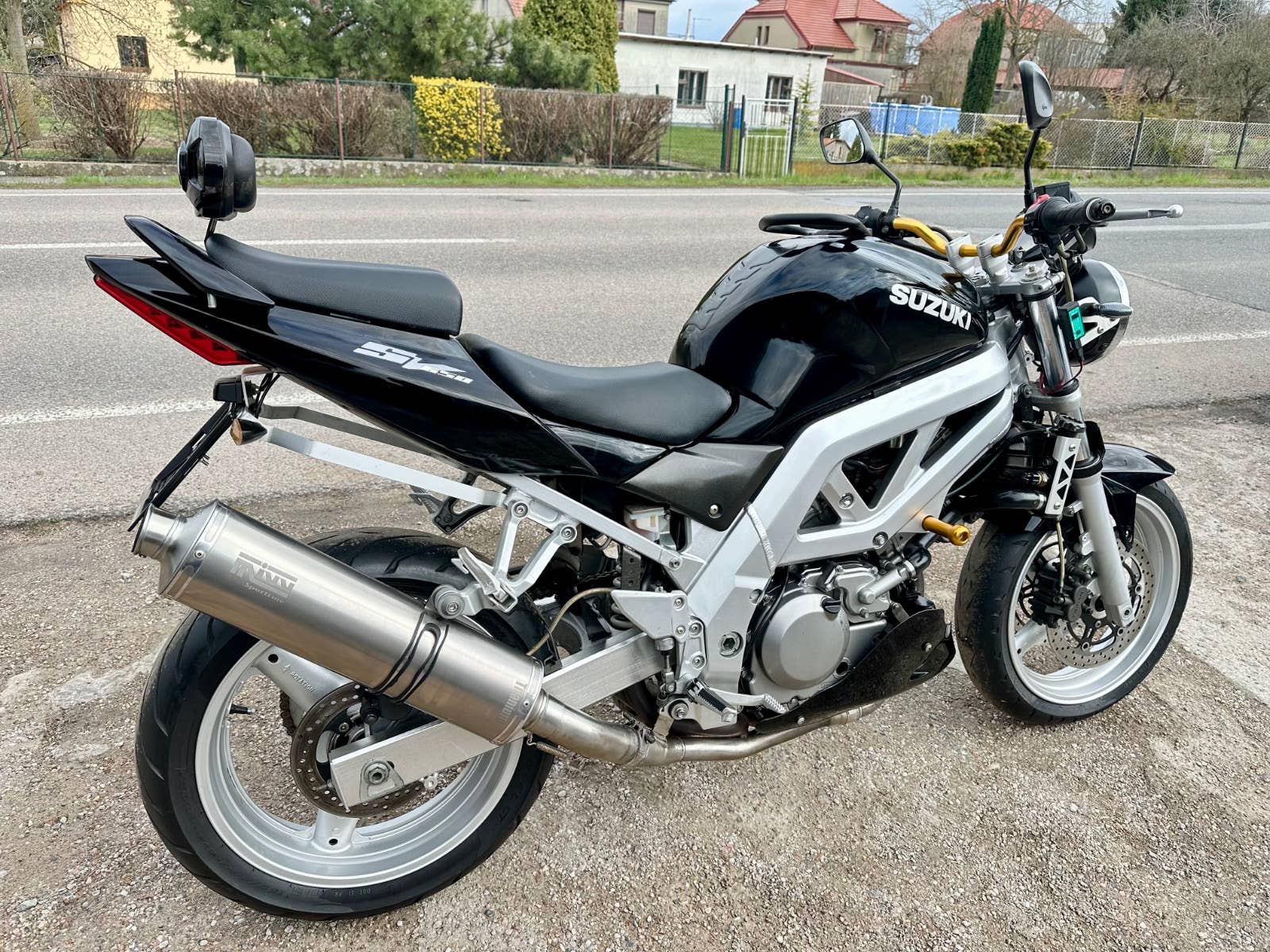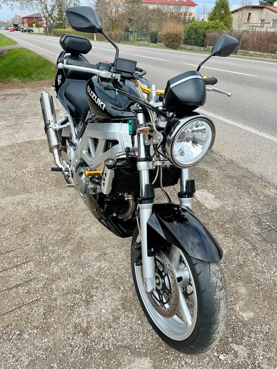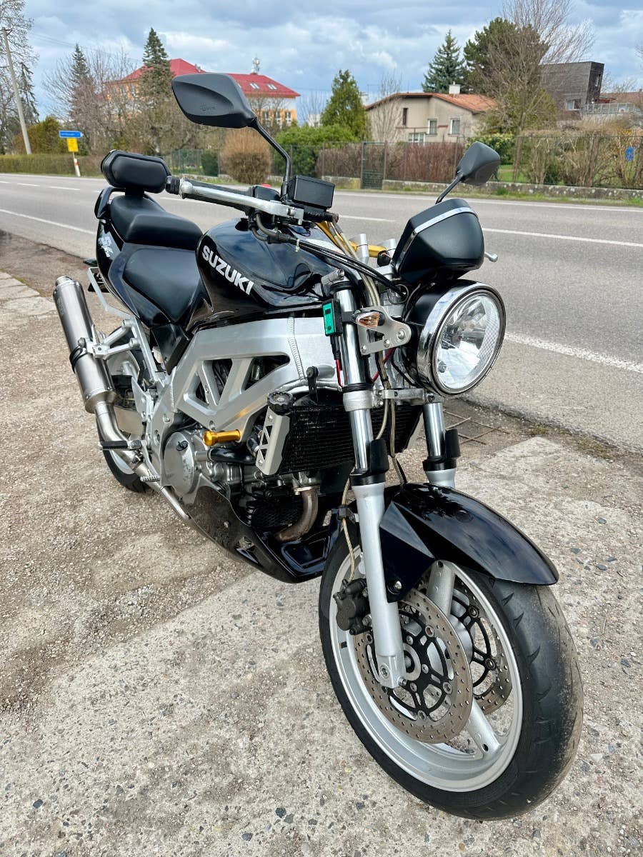 Suzuki sv 650 n, 2004, najeto cca 50 tis km, pneumatiky jsou vyfocené, nová baterie, opěrka, Laďák Mivv, klín pod motor, řidítka, padací špunty, drobná kosmetika s najde, možnost úvěru od Essoxu nebo Cofidis