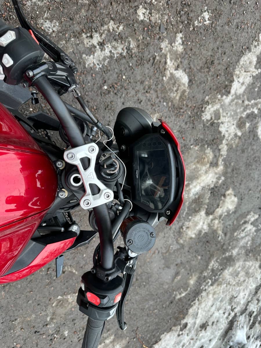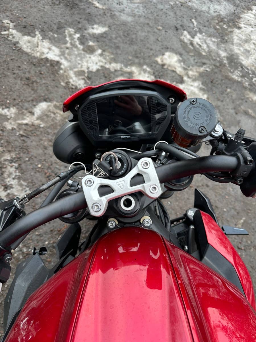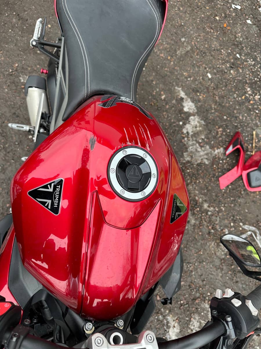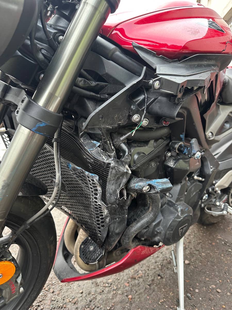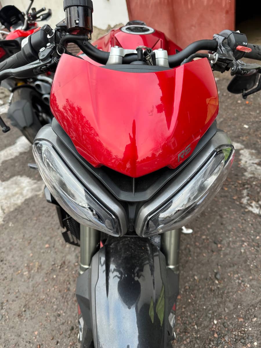 Triumph street triple Rs, 2024, najeto cca 3 tis km, havarovaný viz foto, podvozek je ok, motor ok, budiky a světlo ok,. Možnost úvěru od Essoxu nebo Cofidis